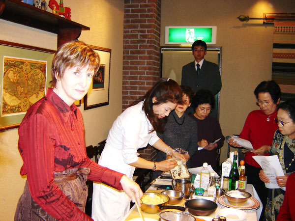 Eveline und Managerin Fujiko beim Kochen deutscher Gerichte mit